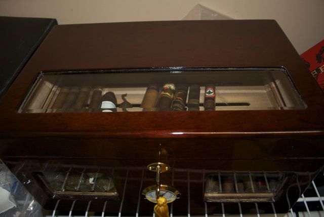 Here is my humble humidor. I know it has glass, but it seems pretty well sealed. The Fuente Boveda packet is for when I travel, I throw it in the travel humi, in that role works well.