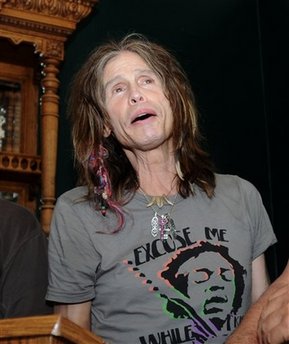 Steven fell off the stage at Sturgis and apparantly got pretty banged up.