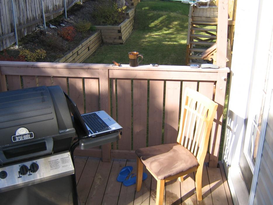 I need a deck covering though. If it's not raining, the sun keeps getting in my eyes while typing.