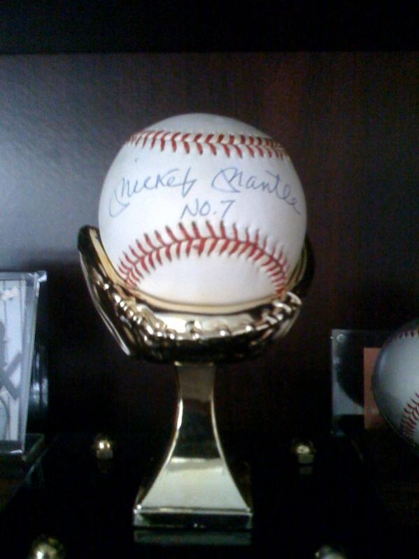 AWESOME ball! I used to collect all cards. FB, Hoops, baseball, and a few hockey. Sold most of my BIG cards a while back. One of which was a Jordan rookie (had almost that entire year of Fleer cards, so MANY HOFer rookies). Wishing I held onto that one, now. Used to have a McGwire rookie, Jerry Rice, Clemens, Puckett, and MANY others. I think I had like Jordan's first 8 or 9 regular edition cards that were out, and many of the special edition ones. As a kid, though I grew up never seeing him play, and I lived in MN, I LOVED Mantle. The first early prizes to my collection was a pair of Mantle cards I got for Christmas (a '66 and '68 respectively).