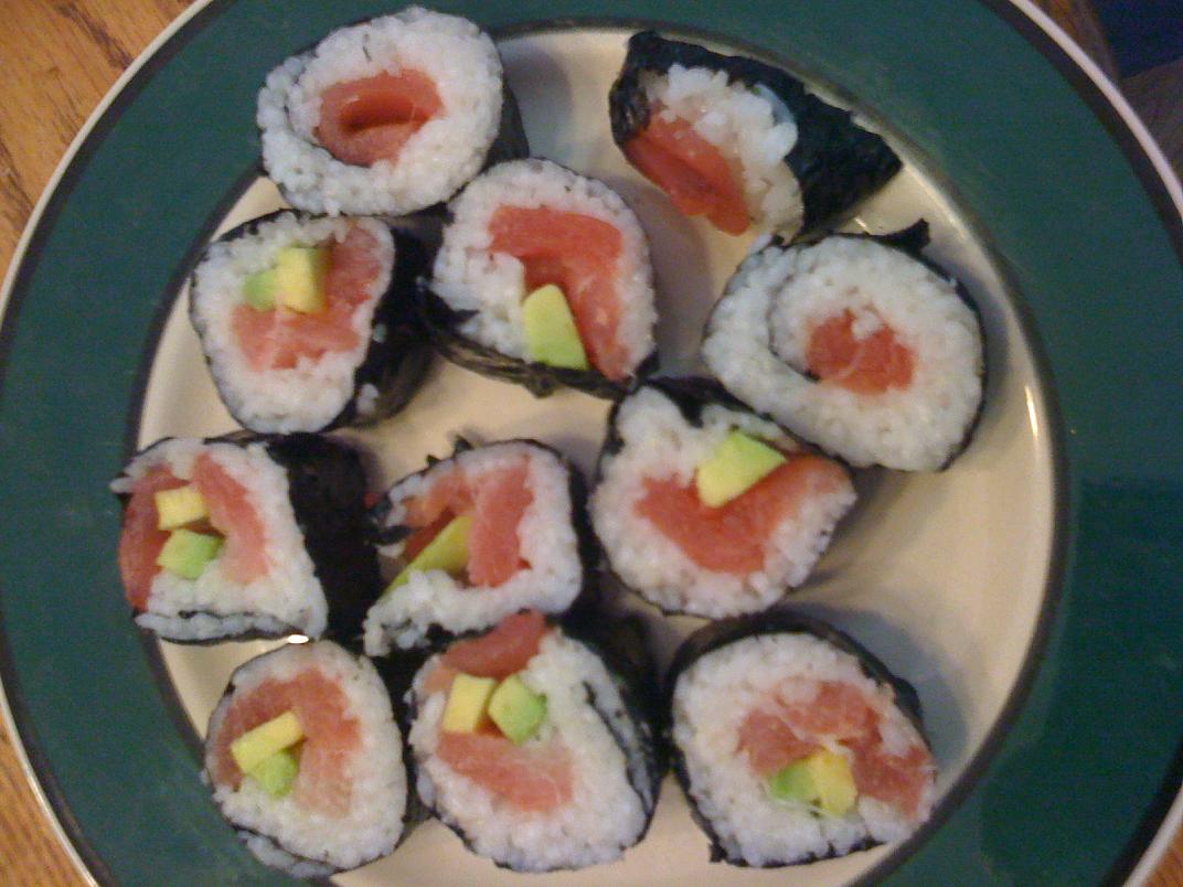 Anyway, I finally gathered all the ingredients earlier in the week and made my first 2 rolls today. First was just tuna, in the 2nd I added avocado, and the 3rd was spicy tuna.
