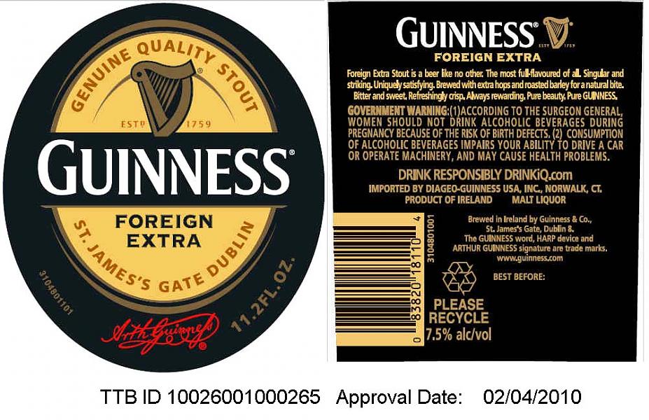 Although the label says "St. James Gate, Dublin"...