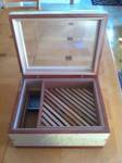 I just wanted to give Ed at waxingmoon props for doing a tremendous job. I just received my humi today from him and was blown away by the craftsmanship. As I started to unwrap the packaging I felt like a little kid on Christmas. Each layer that came off I could smell the cedar grow stronger. The humi is beautiful and the seal is amazing. I know this thread is useless without pics, I have to figure out how to take pic with my phone and paste it but under the waxingmoon thread it's #76, birdseye maple and bloodroot. Thanks again Ed for an outstanding job.