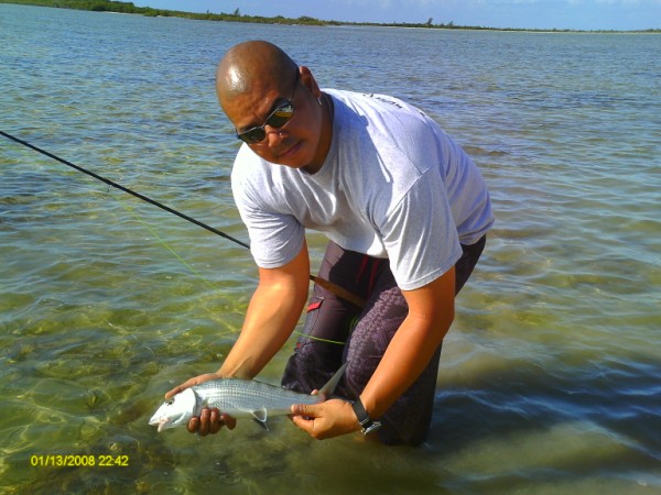 A moutain river with wild trout or an ocean flat with tailing Bones' and my fly rod. A cold beer and a cigar when I am done. Heaven