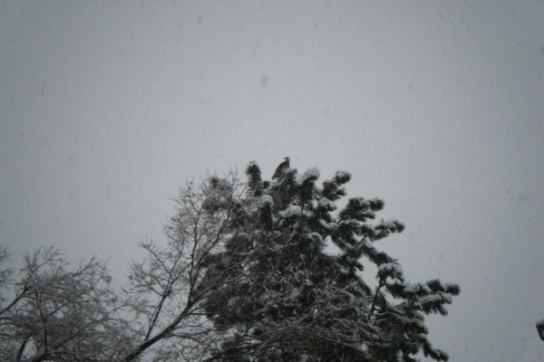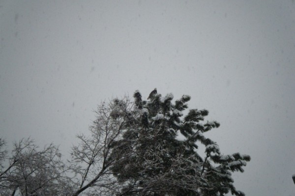 Little hard to see but look at top of tree, had a Bald Eagle in the backyard yesterday