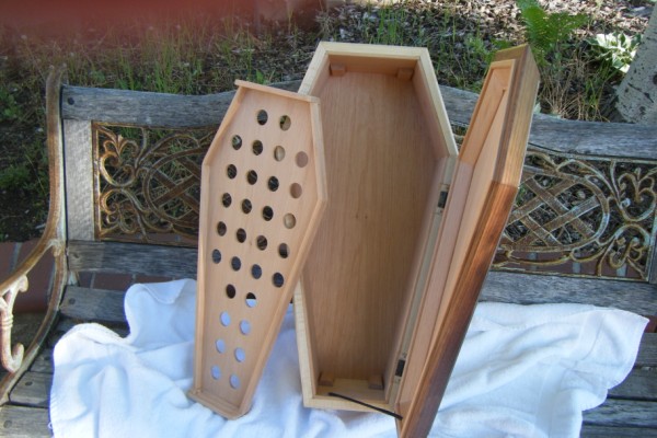 --Lid : Humidification bay of 1 inch for bead storage resting on slotted panel directly over single storage, then a 1 in hardwood top.