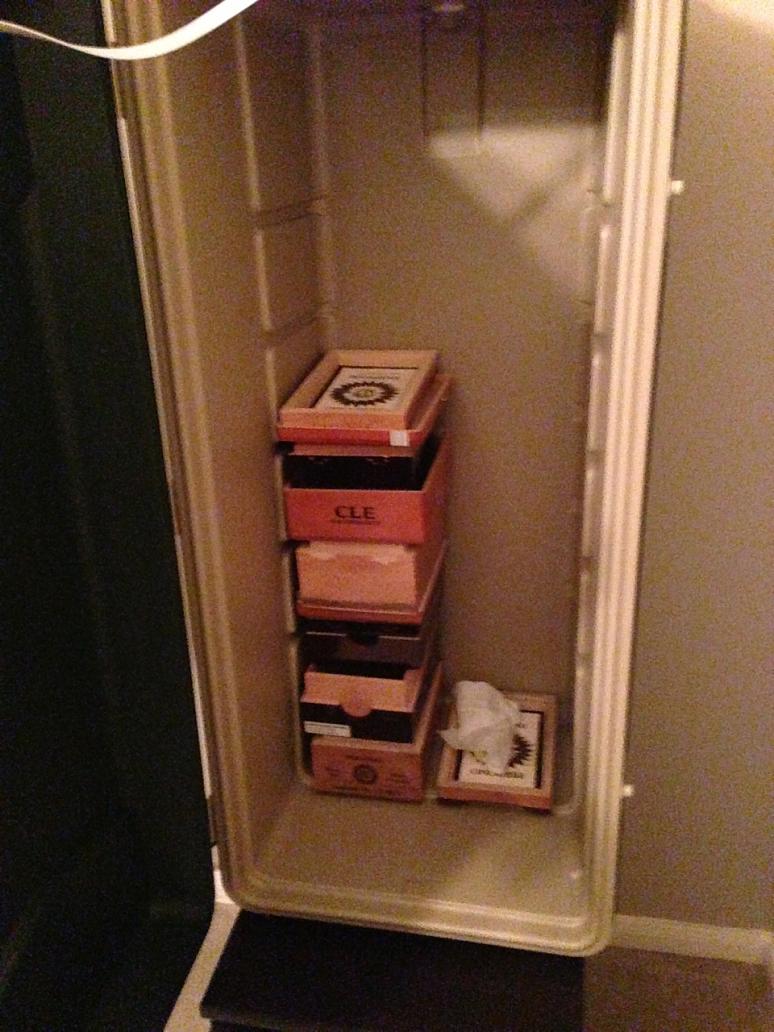 I wiped down the inside with rubbing alcohol and then distilled water. The boxes are empty and being used to get the cedar smell going. Beads should be here today, then I will have to wait a couple of paychecks to get the shelves/drawers.