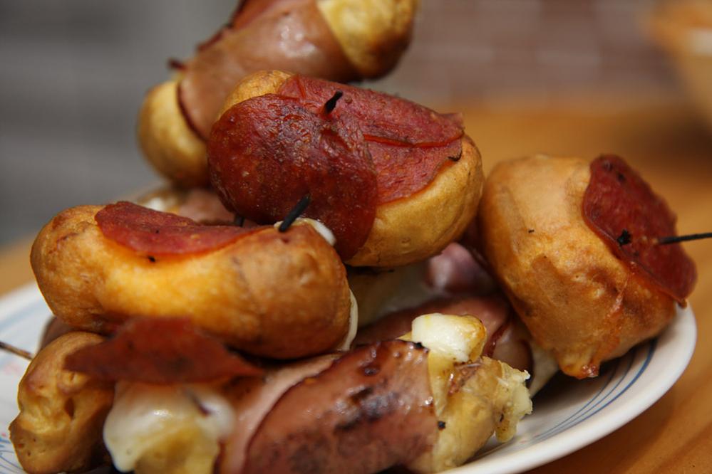 Checked the meat drawer for other options. Found some sliced ham, and some pepperoni. I thought what the hell, and worked with what I had.