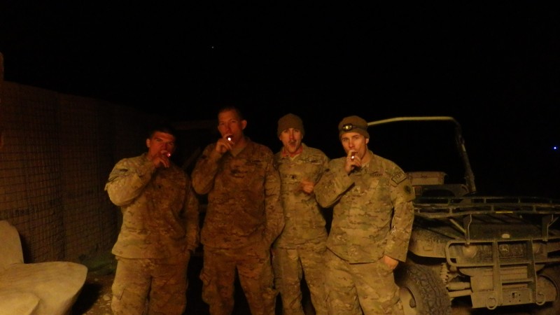 I would like to take the time to thank you guys on behalf of my unit in afghanistan for the cigars you send they were greatly appreciated!!! we got them two days ago and as u can see we are SMOKING THEM UP!!! Thank you again.