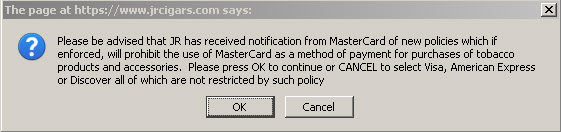 I could be wrong but I thought that Mastercard had started this with illegal cigarette sales online and that if a vendor was in compliance with all federal, state, and local laws then they didn't have a problem. I could have missed them banning all tobacco purchases.