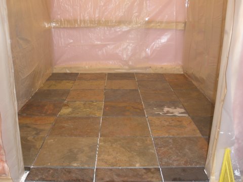 :-) The floor is slate .. monday we start to install the cedar... i'll keep you posted.